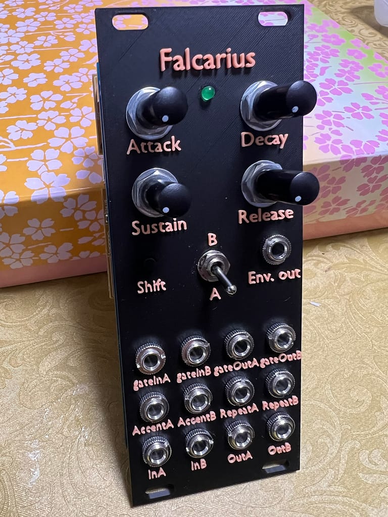 Eurorack信号の入力チャンネル2つあり、それらをミックスしたモノラル出力とPhoneレベルに落としたステレオ出力を1つずつ設けています。